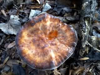 It looks sorta like a shitakke but I wouldn't eat a mushroom I couldn't identify with 100% certainty.